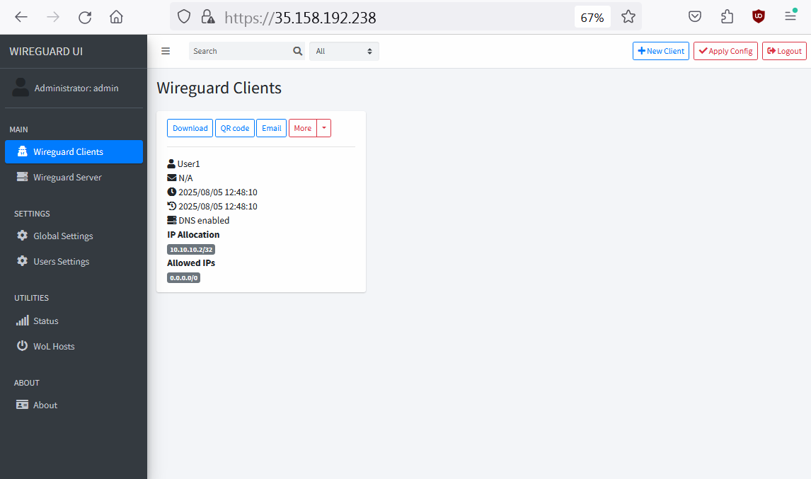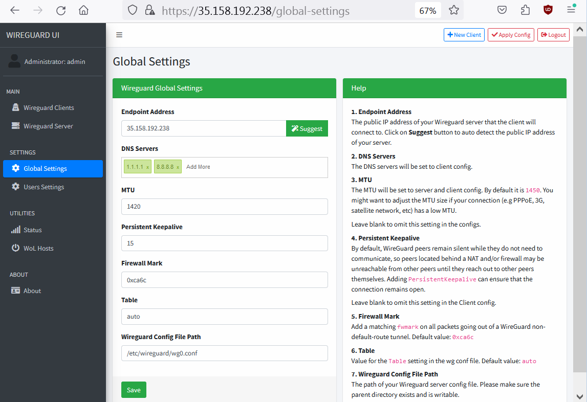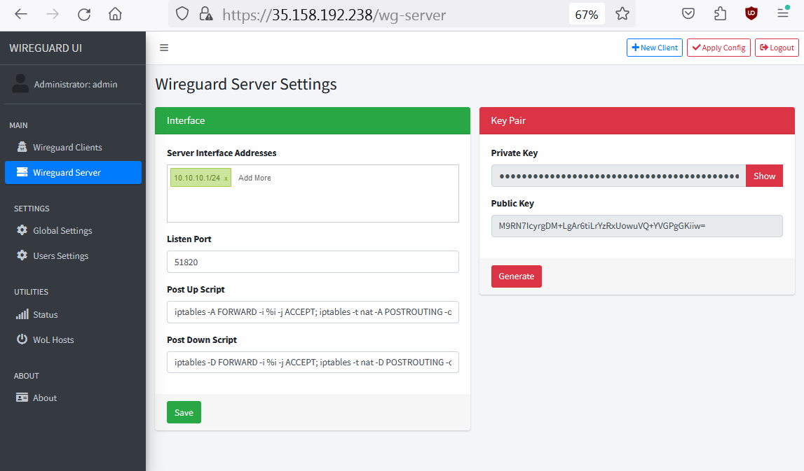 WireGuard VPN Server for Internet Access with user management Web Panel