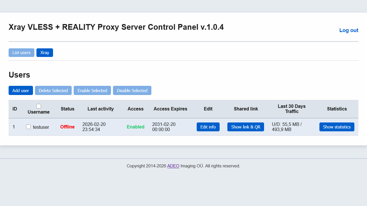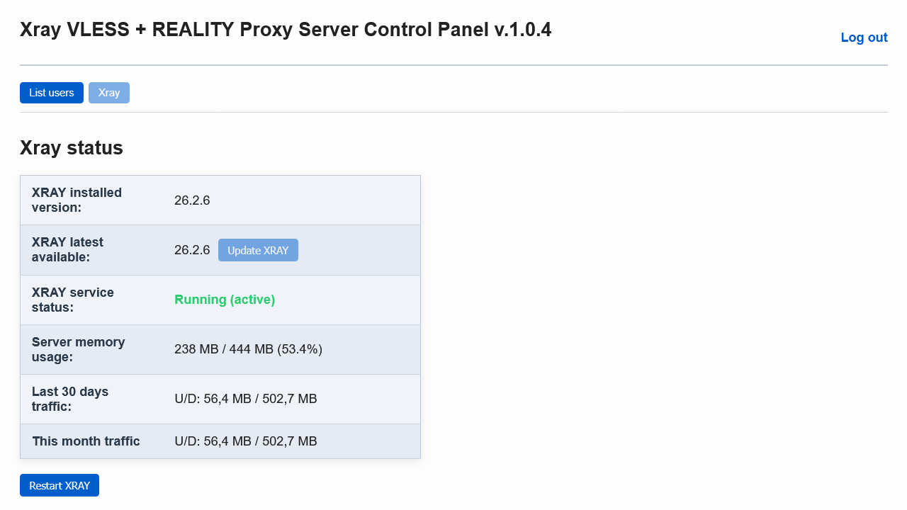 Xray VLESS VPN-like Proxy Server with User Management Web Panel